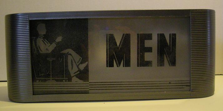 | This is an original vintage 1940's light up men's room sign. Used in better restaurants, cafes, and